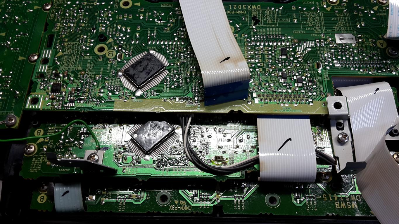 Bei diesem DJM‑750 waren mehrere Bauteile durch Flüssigkeit beschädigt. Nach der Reinigung, dem Austausch der betroffenen Komponenten und einer gründlichen Prüfung lief der Mixer wieder einwandfrei – ohne Knacken, ohne Aussetzer, ohne Risiko.