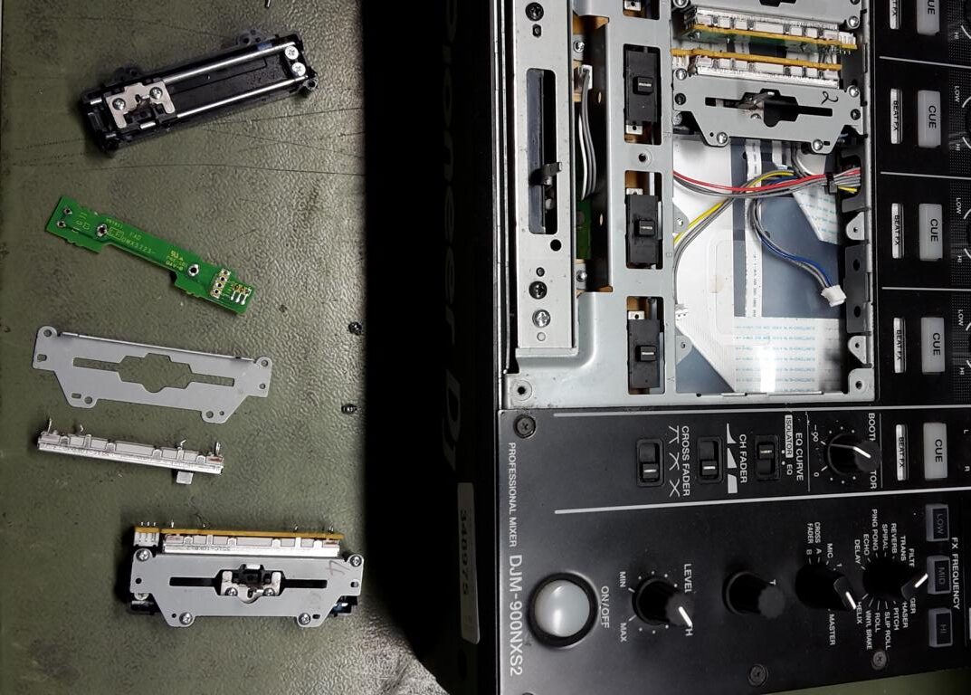 Der Pioneer DJM‑900 NXS2 ist einer der meistgenutzten Club‑Mixer weltweit. Präzise Fader, hochwertige Verarbeitung und ein klarer Sound machen ihn zum Standard in vielen Clubs und auf Events. Doch auch ein Profi‑Mixer wie der NXS2 bleibt nicht verschont, wenn Linefader über Jahre intensiv genutzt werden. Genau das war bei diesem Gerät der Fall: Ein Linefader war verschlissen und musste ersetzt werden.