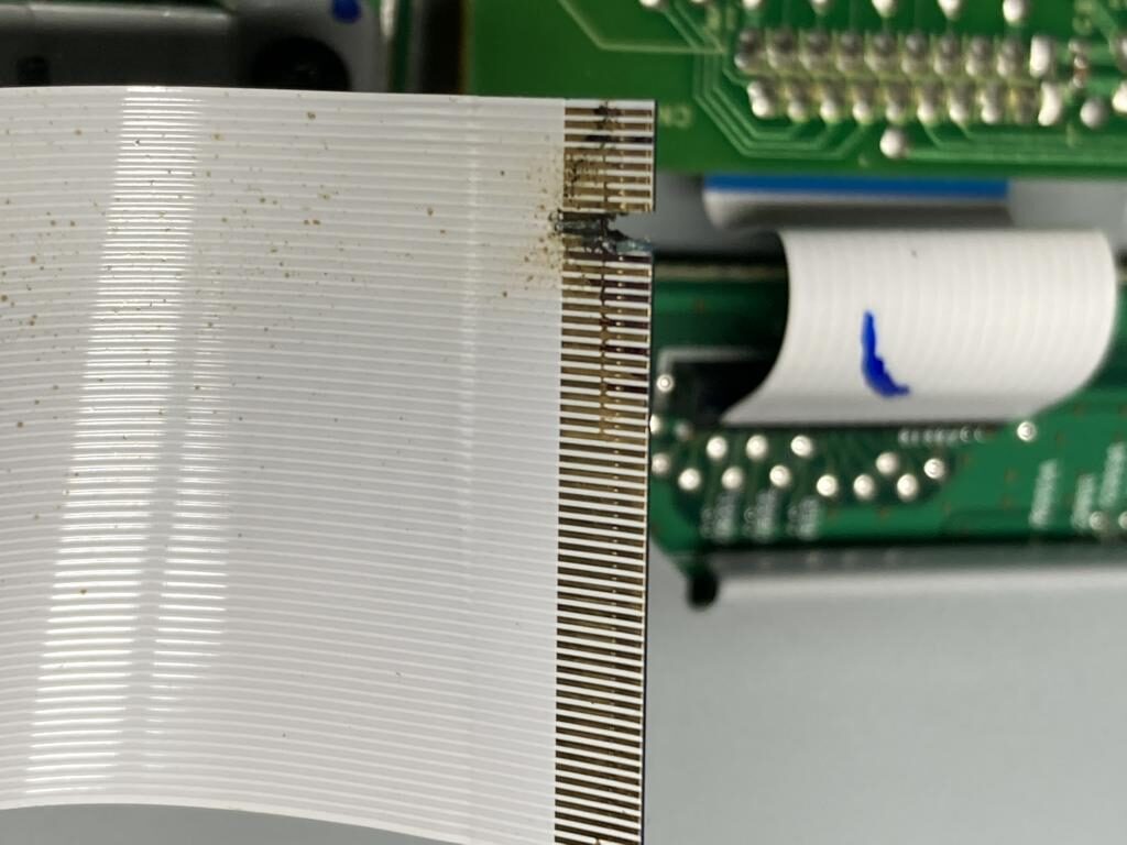 Wenn Flüssigkeit auf ein Flex‑Kabel trifft, kann es zu Kurzschlüssen kommen. Das Kabel schmort durch, Signale kommen nicht mehr an und ganze Bereiche des Controllers fallen aus. Typische Symptome sind nicht reagierende Tasten, flackernde LEDs, Aussetzer im Display oder ein Controller, der gar nicht mehr startet. Oft sieht man den Schaden erst, wenn das Gerät geöffnet wird – und dann zeigt sich schnell, wie weit sich die Flüssigkeit verteilt hat.