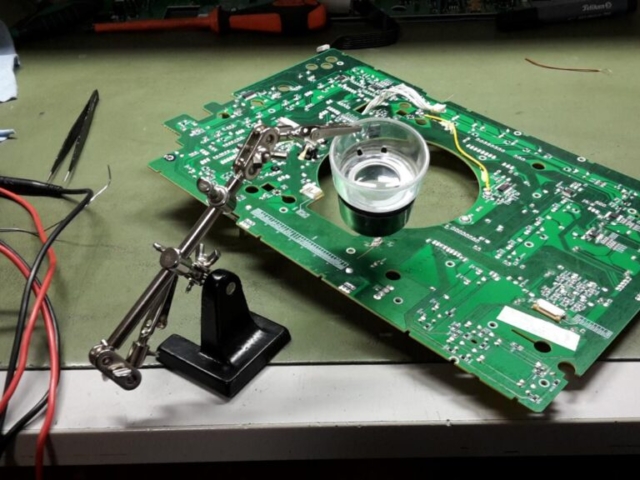 Wir entfernen Feuchtigkeit, reinigen Platinen, ersetzen beschädigte Bauteile und testen das Gerät umfassend.