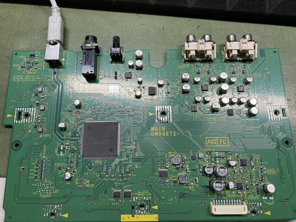 Bei diesem Gerät wurde der Flüssigkeitsschaden vollständig behoben. Die betroffenen Platinen wurden gereinigt, beschädigte Teile ersetzt und die Elektronik sorgfältig geprüft. Danach funktionierte der DDJ‑FLX4 wieder einwandfrei.