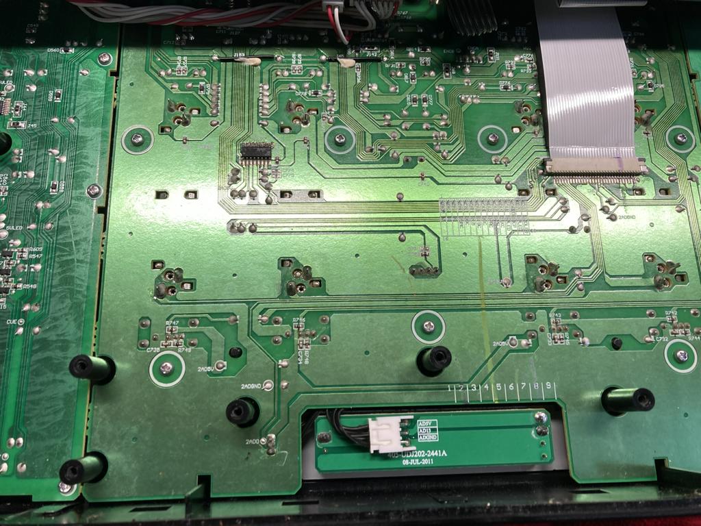 In der DJ‑Werkstatt nehmen wir den DDJ‑RX komplett auseinander und schauen uns jede Sektion genau an. Die betroffenen Platinen werden gereinigt, korrodierte Stellen freigelegt und wiederhergestellt. Klebrige Rückstände, Oxidation und Feuchtigkeit werden entfernt, damit die Elektronik wieder sauber arbeitet. Auch die Mechanik – besonders die Jog‑Wheels und Fader – wird gereinigt und wieder leichtgängig gemacht. Wenn Bauteile durch den Feuchteschaden beschädigt wurden, ersetzen wir sie direkt.