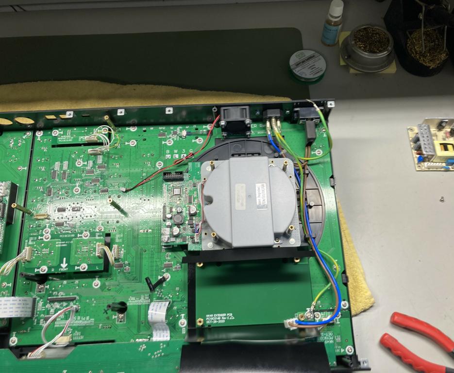 In der DJ‑Werkstatt wird ein defekter Lock‑Schalter vollständig geprüft. Das Gerät wird geöffnet, die Schalterplatine freigelegt und der Lock‑Schalter auf mechanische Abnutzung, Kontaktprobleme oder Flüssigkeitsschäden untersucht. Defekte Bauteile werden ersetzt, kalte Lötstellen nachgearbeitet und die gesamte Effektsektion getestet. Anschließend folgt ein vollständiger Funktionstest, um sicherzustellen, dass der Schalter wieder zuverlässig arbeitet.